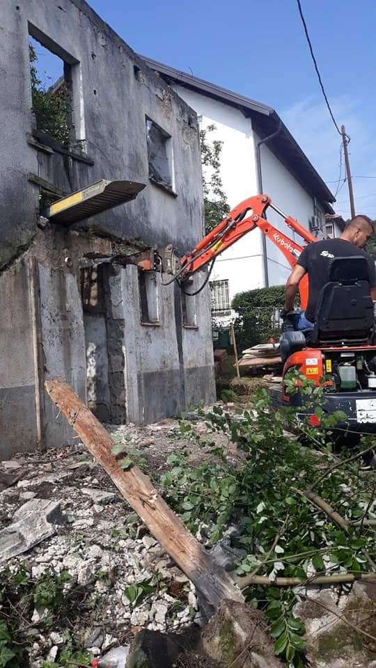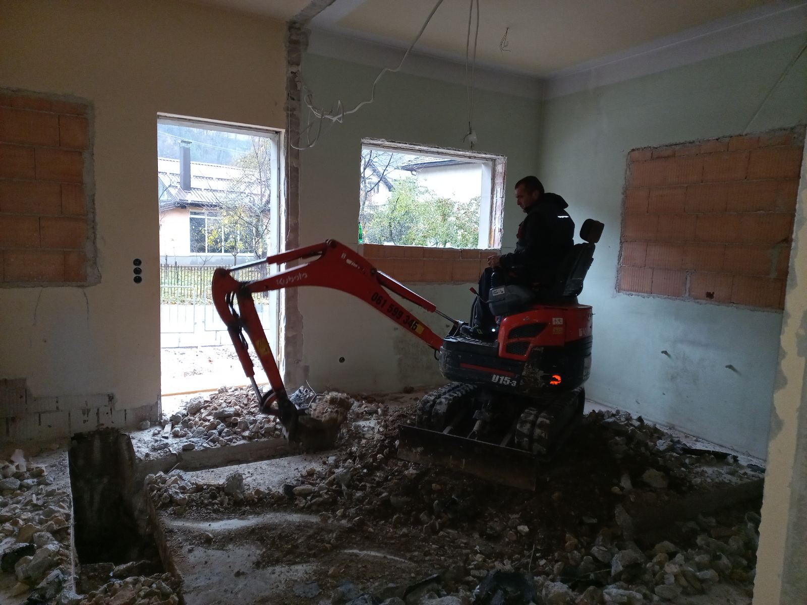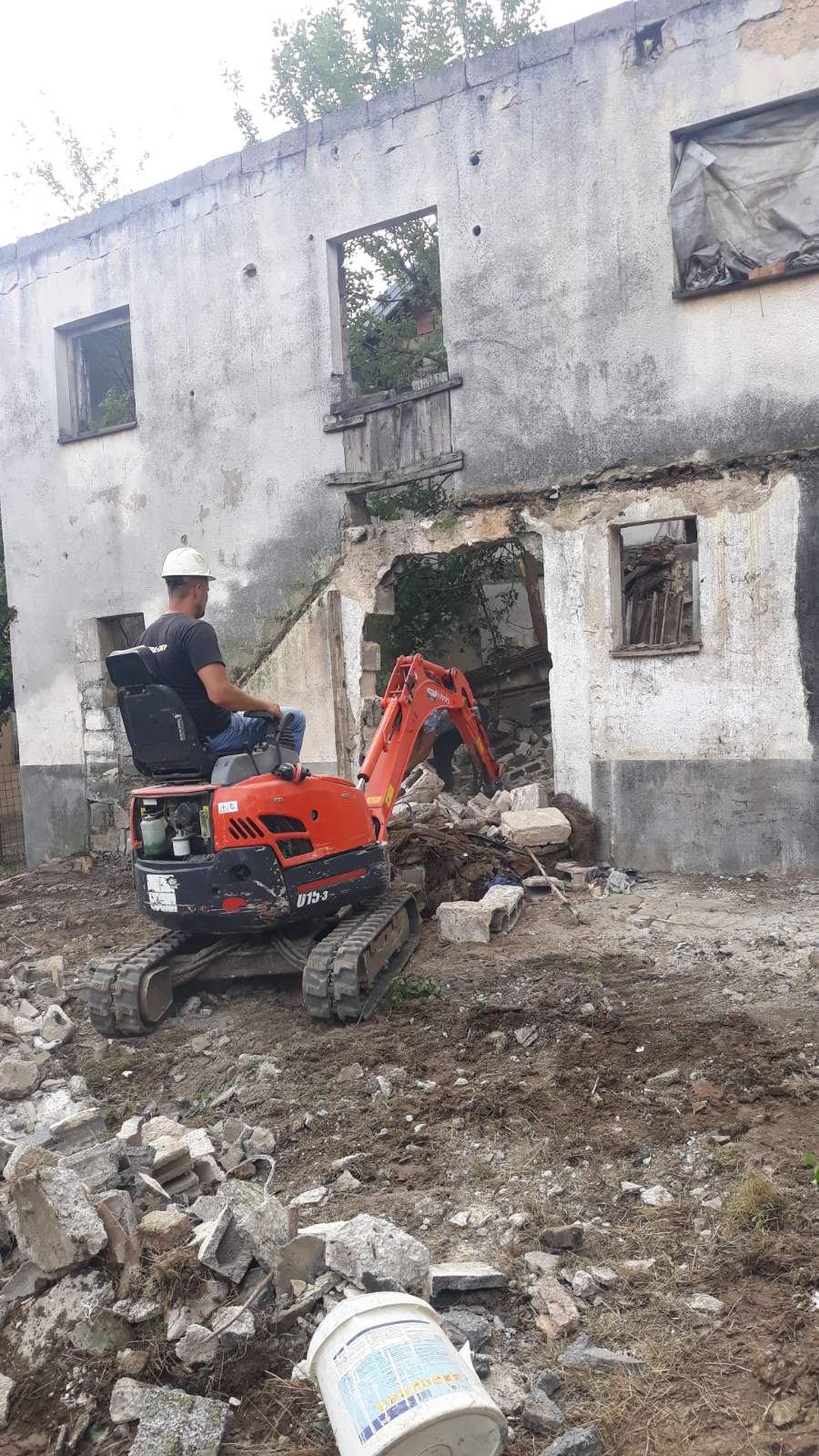 Pružamo kompletne usluge rušenja objekata, zidova i podzida te odvoz građevinskog otpada i šute uz sopstvene kontejnere i mehanizaciju.