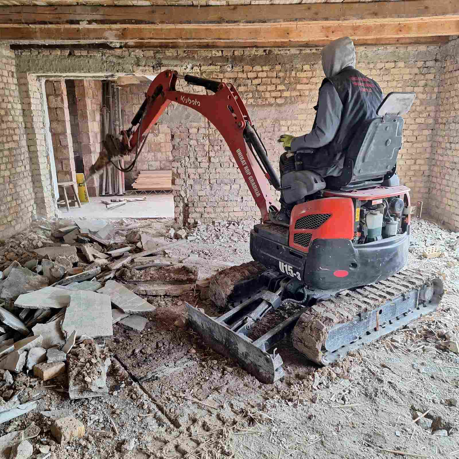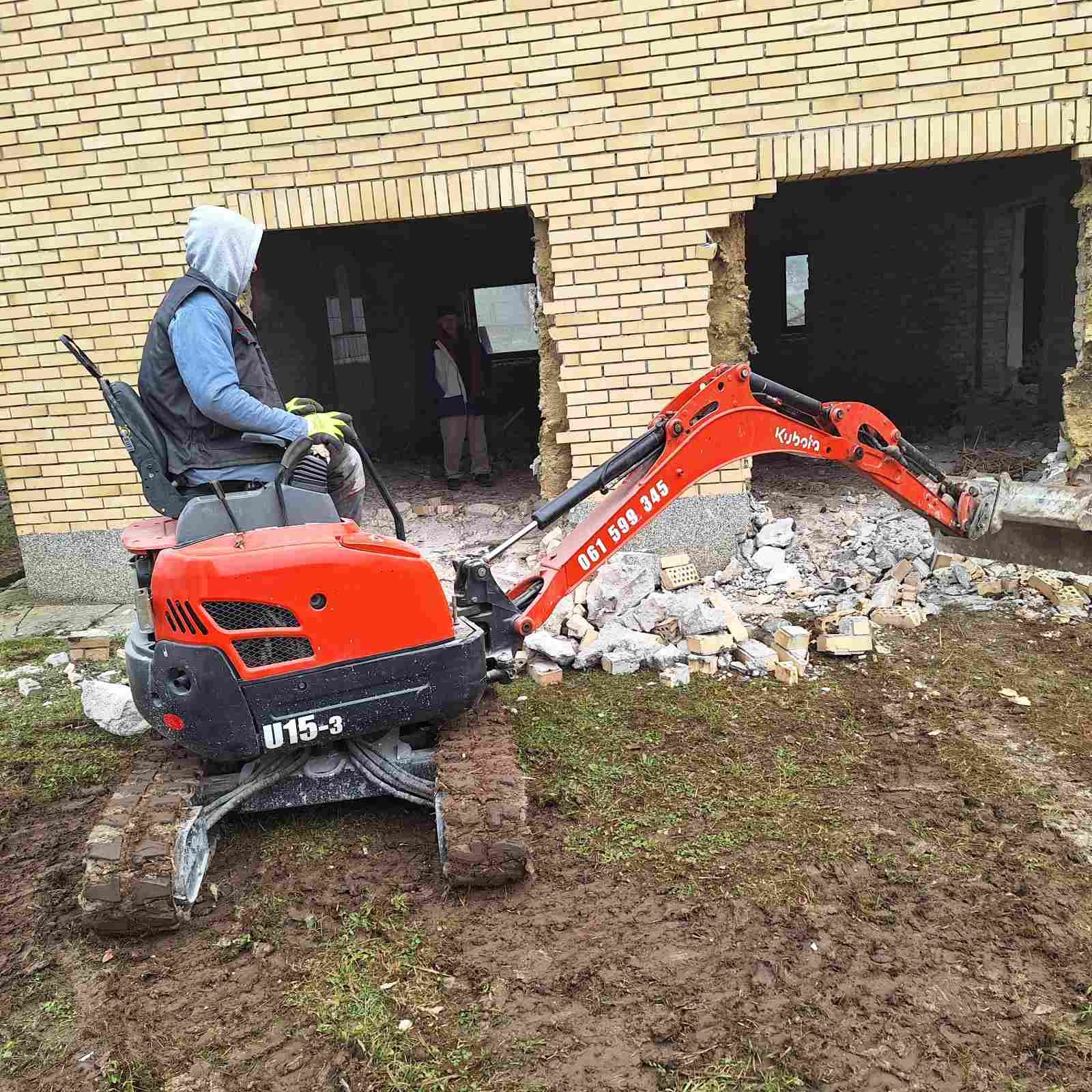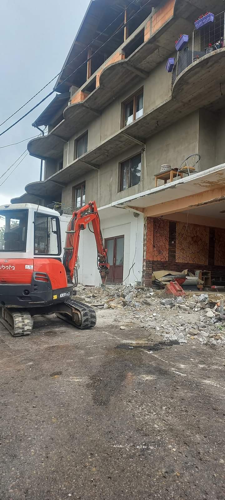 Pružamo kompletne usluge rušenja objekata, zidova i podzida te odvoz građevinskog otpada i šute uz sopstvene kontejnere i mehanizaciju.