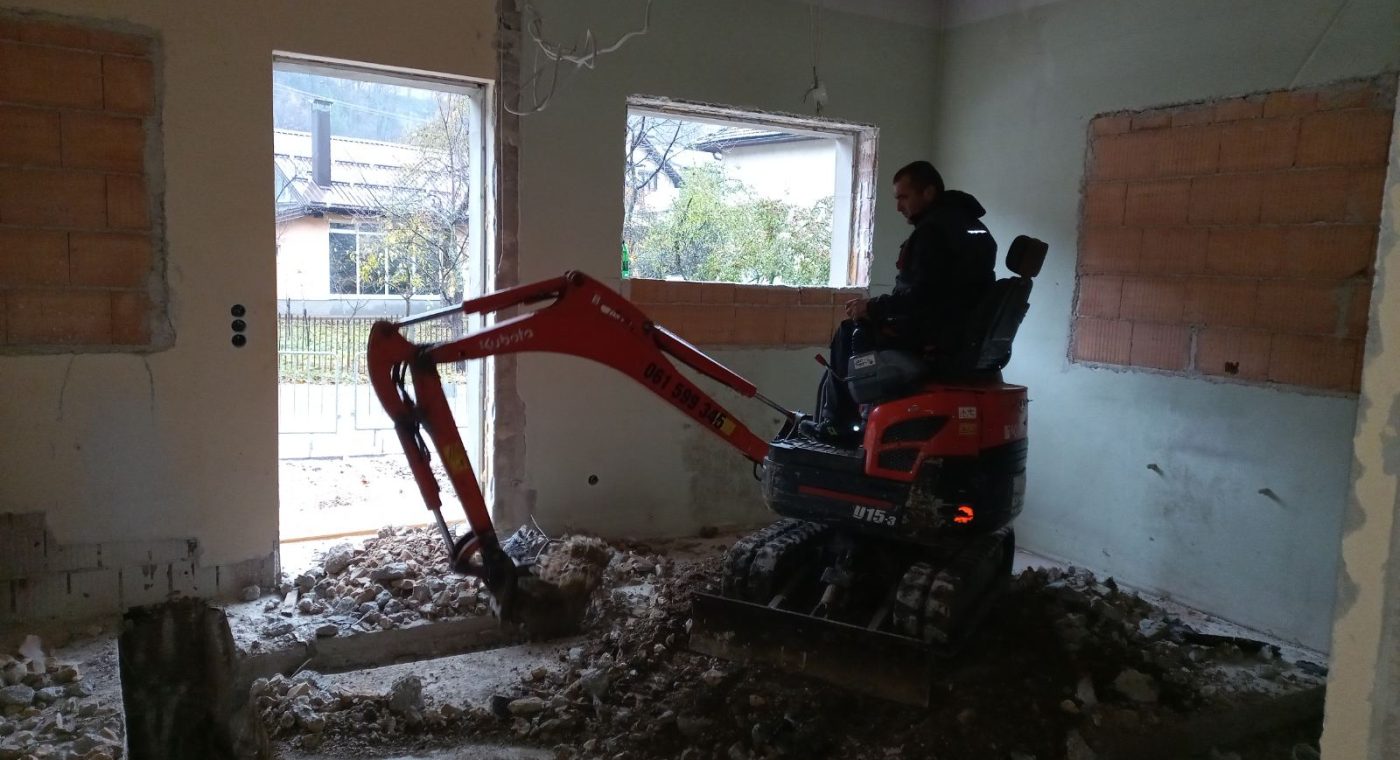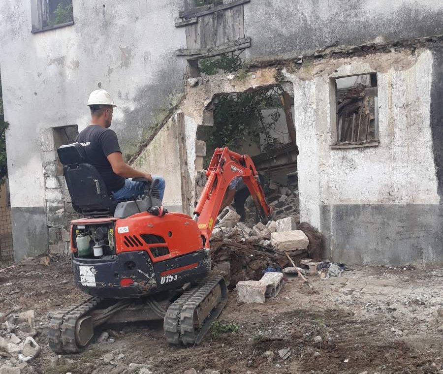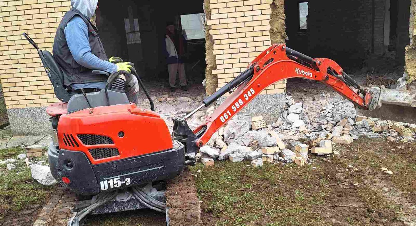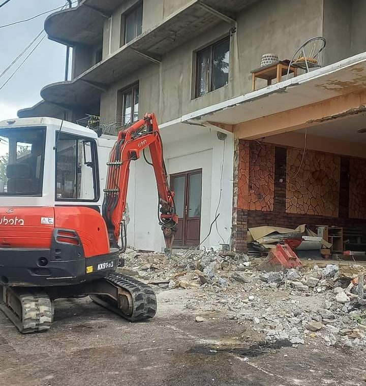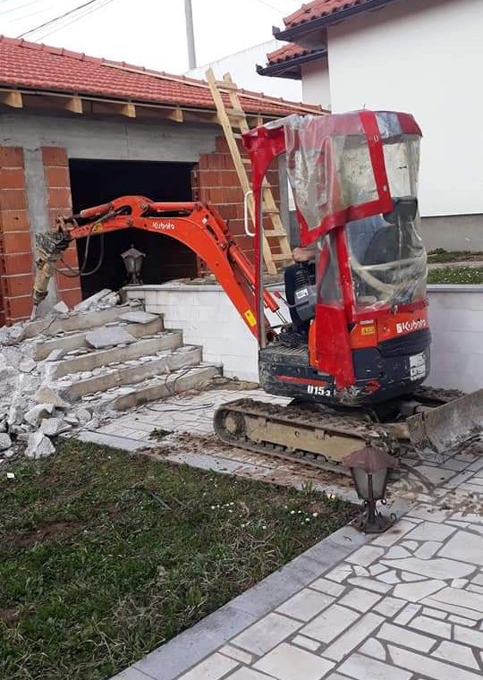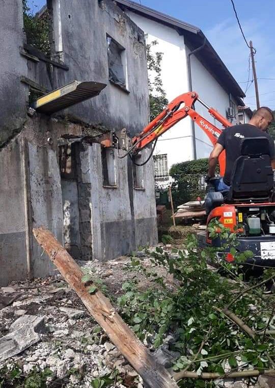 Pružamo kompletne usluge rušenja objekata, zidova i podzida te odvoz građevinskog otpada i šute uz sopstvene kontejnere i mehanizaciju.