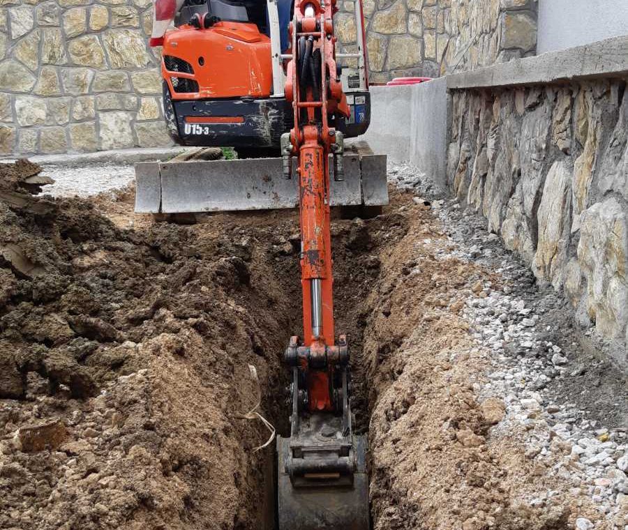 - Kopanje kanala za kanalizacione mreže, telekomunikacione projekte i druge instalacije