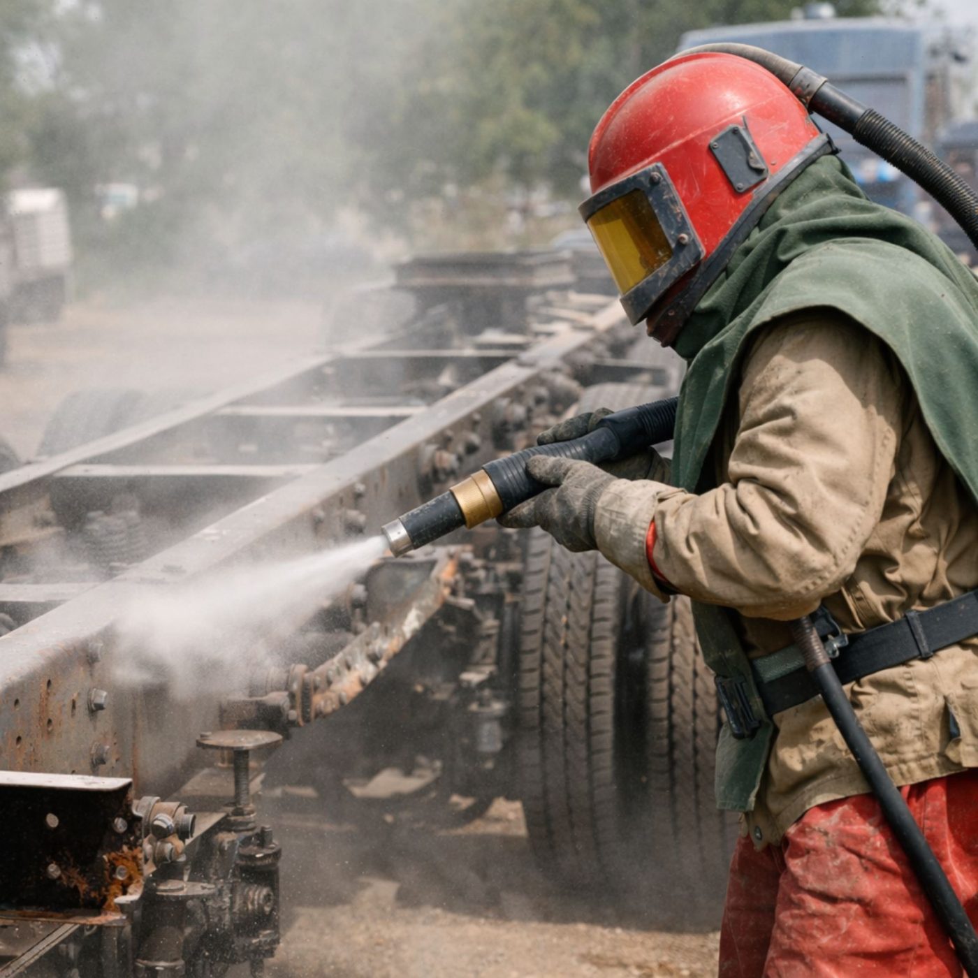 - Pjeskarenje šasija kamiona, bagera i radnih mašina